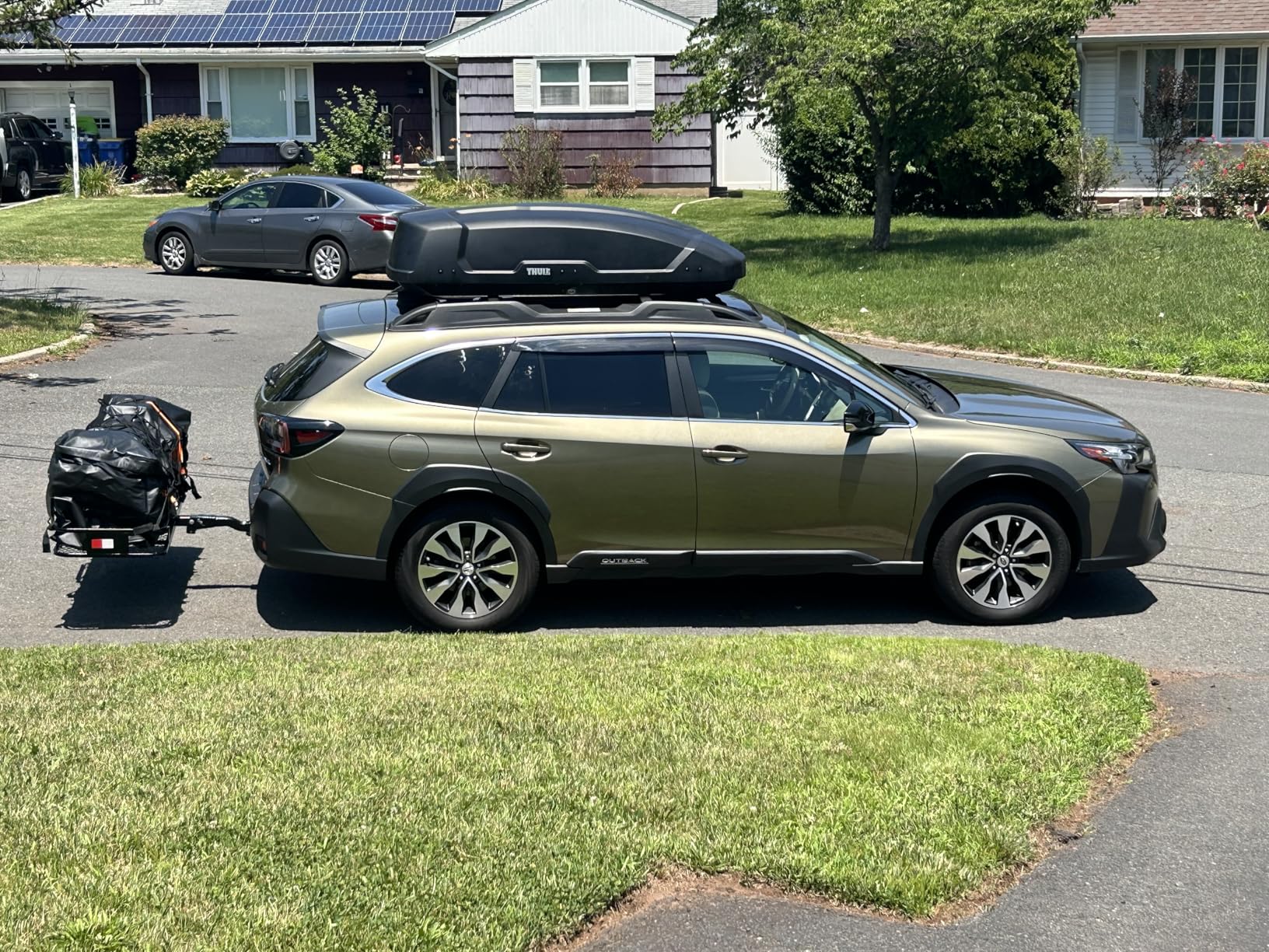 The included waterproof cargo bag exceeded my expectations. Driving through Minnesota in winter conditions with blizzards and heavy rain, not a single drop made it inside. The welded seams and Velcro flaps over the zippers actually work. My wife appreciated that she could still access the rear hatch when the carrier was folded up, which saved us from unloading everything just to grab a forgotten item.
