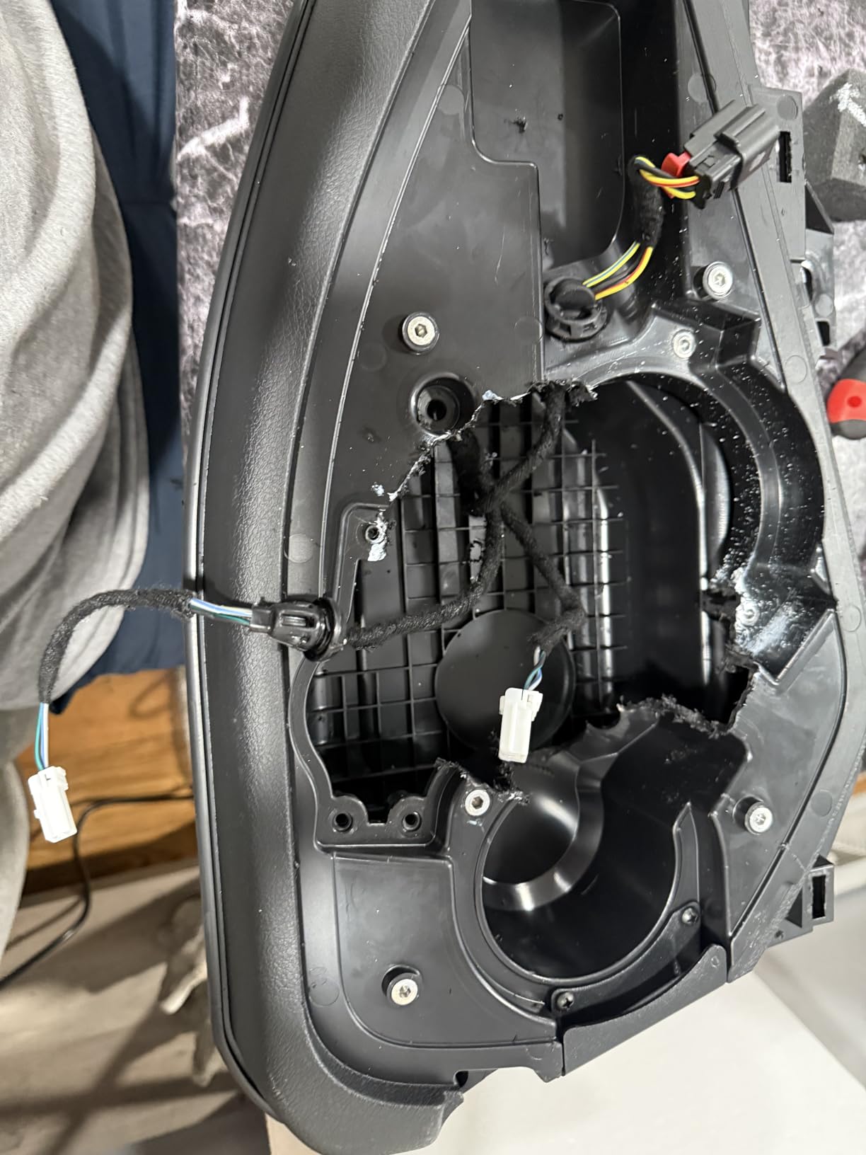 Forum users consistently report that the cutting is less scary than it initially seems. The factory soundbar plastic cuts cleanly with a Dremel or jigsaw. Take your time, follow the template, and the results look professional.